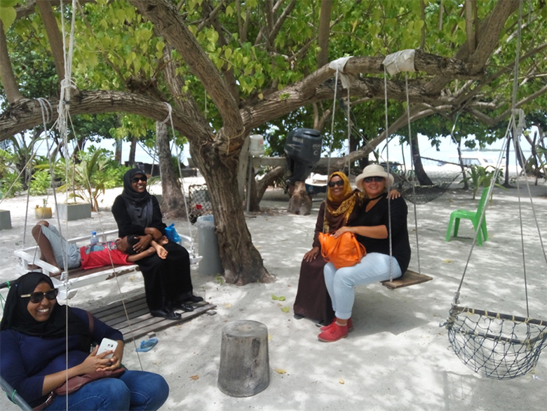 Через 20 минут нас ждал скоростной катер с гидом. Мы поплавали среди кораловых рифов. Затем заехали на необитаемый остров, который оказался просто заброшенным. Затем – на остров Huraa, где живет местное население. И сразу понятно, какой образ жизни ведут мальдивцы. Сидят себе женщины в абаях и неспешно разговаривают, дети отдыхают в гамаках. Фольклорная экскурсия произвела хорошее впечатление.