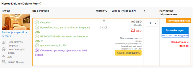 Експерти Мандрії також підшукали на ці дати готель – Green Flora 3*. Дати – 22-30 вересня. Ціна – $23 за ніч у двохмістному номері. Загальна вартість з урахуванням податків та зборів за 8 днів – $268. Сніданок включено у вартість.