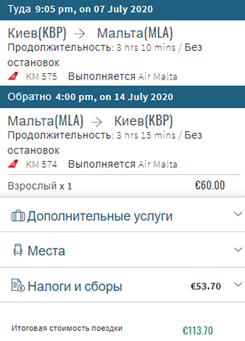 Вартість квитків за тарифом Go Smart з багажем до 23 кг та ручною поклажею до 10 кг – €113 у два боки.