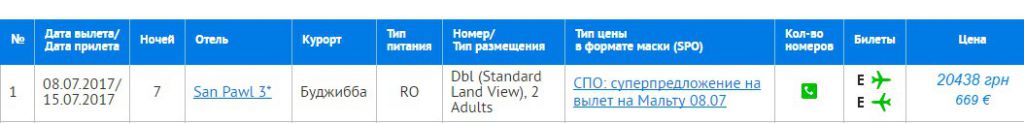 Вылет на Мальту 8 июля, отдых на 8 дней. В стоимость – 669 евро на двоих – входит перелет, отдых в отеле San Pawl 3*. Без питания.