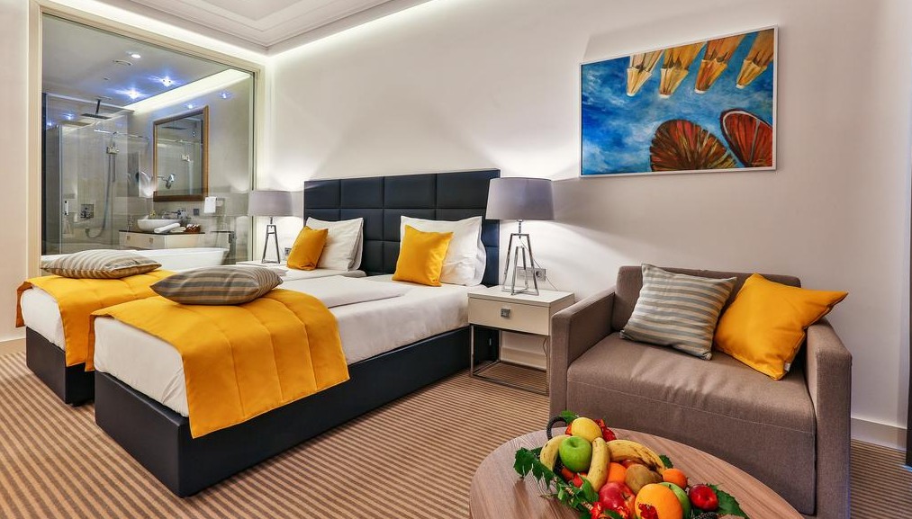 Не найдешевший, але якісний відпочинок у Чорногорії: готель Rivijera Hotel 4* в самому центрі чорногорського узмор’я, розташованому між Святий Стефан і містом Бар. Готель оточений соснами, пальмами, кипарисами. Поруч – набережна Петроваца з ресторанами, магазинами і барами. Сніданки і вечері. Вартість – 24 590 грн з людини.