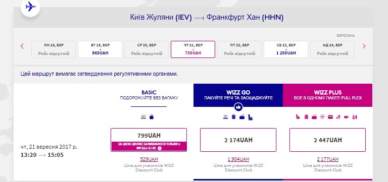 Київ – Франкфурт, 21 вересня – €18 в один бік для членів Wizz club.