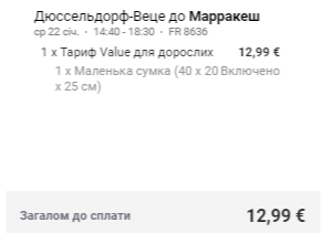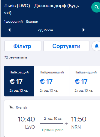 Дата – 22 січня. Вартість квитка в один бік – €17