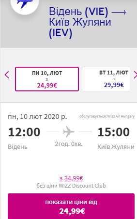 Пропонуємо на вибір рейси з Відня в Київ від авіакомпанії Wizz Air: