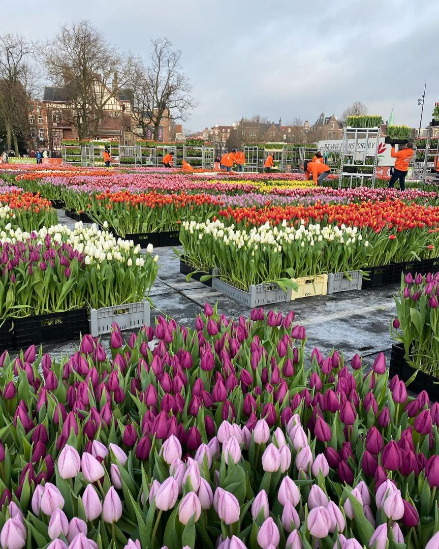 Кожен відвідувач нідерландського Національного дня тюльпанів міг отримати до 20 квіток для створення свого букету. Для цього на площу привезли 200 000 тюльпанів.