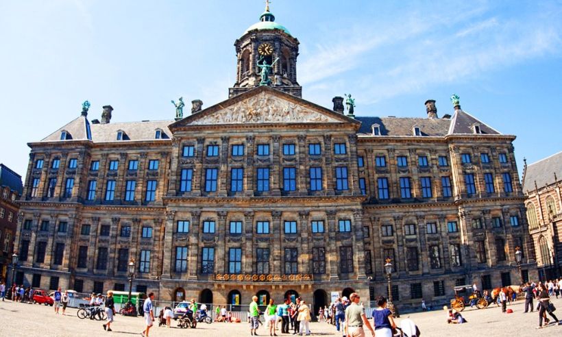 Построен он был известным архитектором Якобом ван Кампеном во второй половине 17 в. за 17 лет. Сначала служил зданием для мэрии города. Продолжительное время ратуша являлась наибольшей в Европе. Дворцом она стала в начале 19 в., когда правивший тогда Луи – брат Наполеона – сделал тут свою резиденцию. А королевский статус появился только в 1935 г., когда испытывающая финансовые проблемы амстердамская мэрия решила продать здание королевской семье.