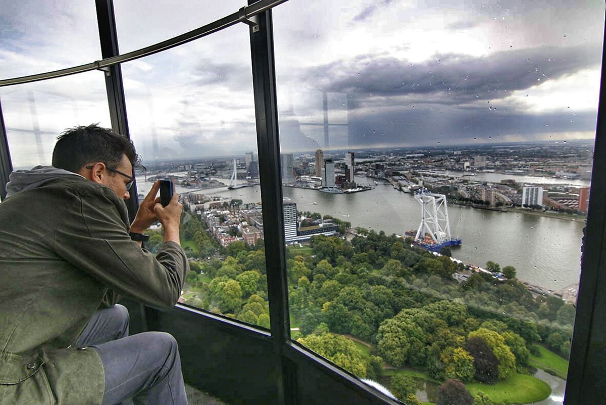 Euromast – вышка в виде мачты. В списке самых высоких башен мира она занимает 24 место, а в Нидерландах – первое. На высоте в 96 м обустроена смотровая площадка «Воронье гнездо». В прозрачных вращающихся кабинках можно подняться на отметку в 185 м. и парить над Роттердамом, рассматривая достопримечательности.