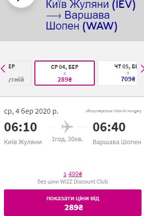 Дата – 4 березня. Ціна – €11 для учасників wizz-клубу та €19 для всіх інших.