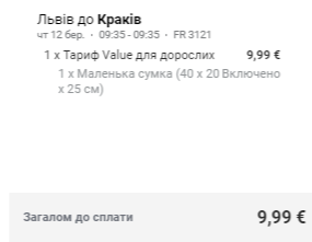 - Львів – Краків. Дата – 12 березня. Ціна – €10