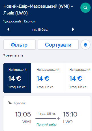 - Варшава – Львів. Дата – 16 березня. Ціна – €14