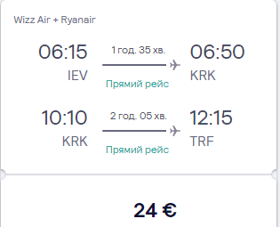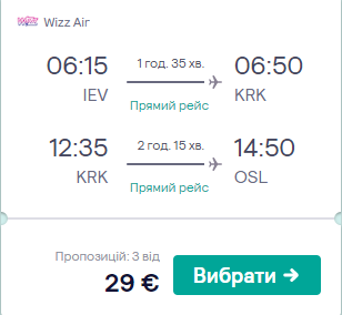 З Києва в Краків летимо рейсом Wizz Air, з Кракова в Осло – Ryanair.