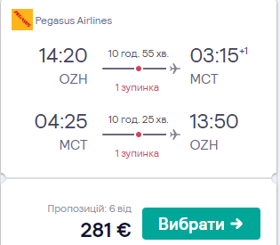 Pegasus Airlines пропонує недорогі квитки з Харкова, Львова, Запоріжжя до столиці Оману – Маскат. Рейси зі стиковками в Стамбулі.