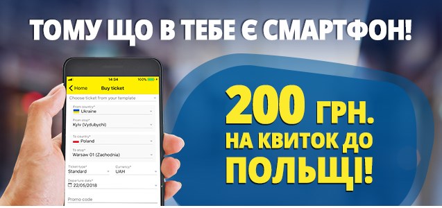 Травнева акція Ecolines – для власників смартфонів. “Купуй 3-31 травня квиток з міст України до Польщі через мобільний додаток Ecolines, та отримай бонус 200 грн. Ваучери нараховуються у валюті EUR за курсом Нацбанку України. Ваучером можна скористатися в період з 02.06.2018 – 24.06.2018 на поїздку до Польщі з усіх міст України. Ваучери нараховуються користувачам 01.06.2018.”.