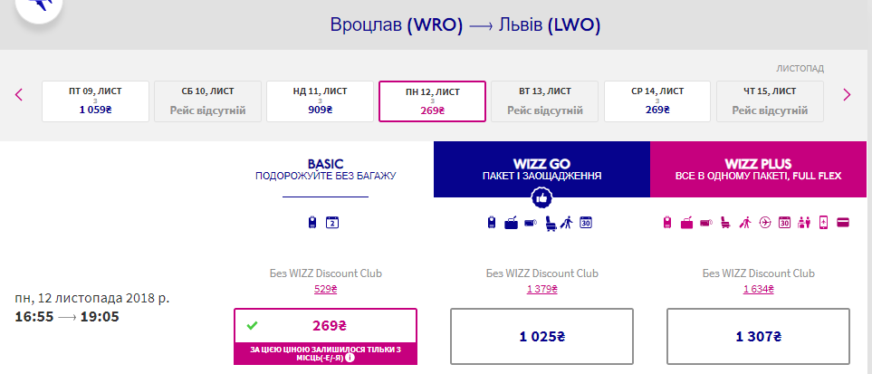 Львів – Вроцлав, 7-12 листопада – 16 євро для учасників Wizz club чи 30 євро для інших пасажирів. У два боки.