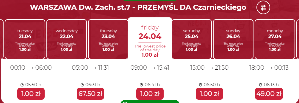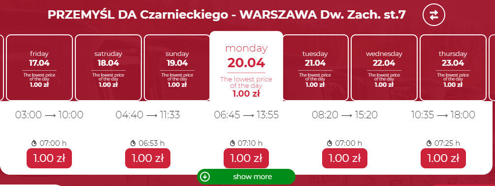 Дати: 20-24 квітня. Ціна квитків у дві сторони – 2 зл. = 14 грн.