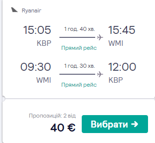 17-19 квітняУ вартість квитів входить ручна поклажа розмірами до 40х25х20 см.