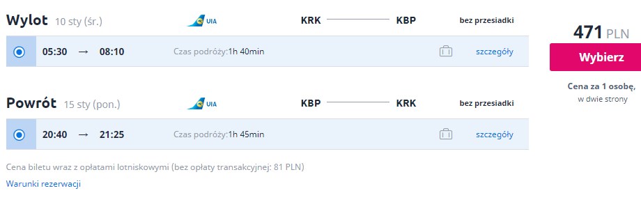 Відправлення з Кракова – о 5:30, посадка у Києві о 8:10.