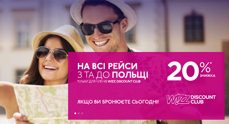 Сьогодні, 10 січня, учасники Wizz Discount Club зможуть забронювати квитки зі знижкою 20%. Акція діє на всі перельоти з України до Польщі та назад.
