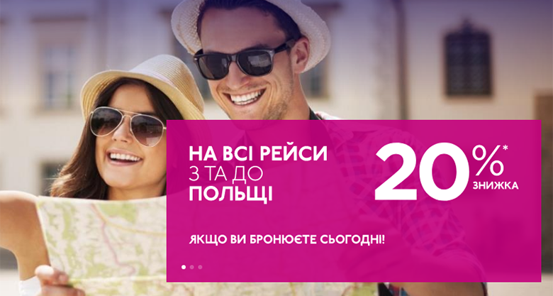 Вчора авіакомпанія Wizz Air запропонувала знижки на перельоти з України до Польщі та назад для учасників Wizz Discount Club, а сьогодні квитки зі знижкою стали доступні для всіх. Отже, знижка 20% надається всім, хто забронює квитки сьогодні, 11 січня.