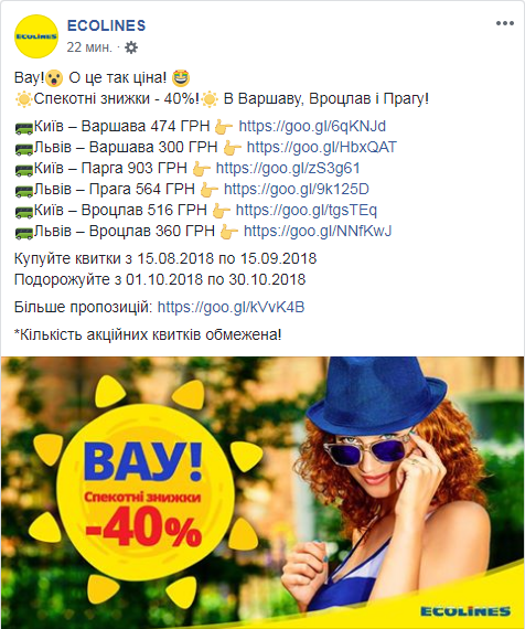 Спекотні знижки до 40% від компанії Ecolines на автобусні рейси з міст України у Варшаву, Вроцлав та Прагу.