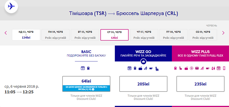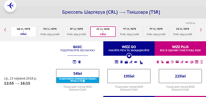 Билеты на рейс Тимишоара – Брюссель, запланированный на 6-13 июля, обойдутся членам Wizz Discount Club в €28 (туда-обратно).
