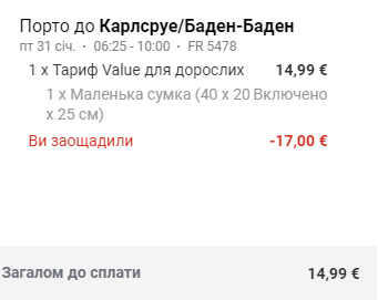 Дата – 31 січня. Ціна – €15. Якщо повертаємось з Порту в Карлсруе 27 січня, то вартість квитка — €19 в один бік.