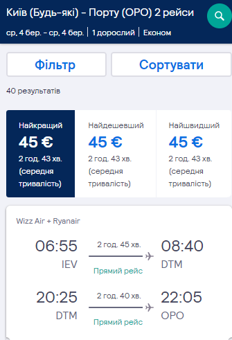 Комбінуючи рейси лоукост авіакомпаній Wizz Air та Ryanair, можна недорого злітати з Києва в Порту. По дорозі — пересадки у містах Німеччини, без ночівель!
