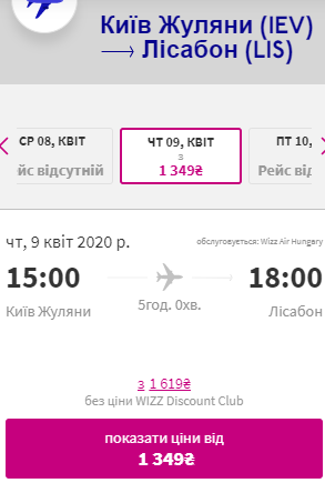 Найнижчі ціни на прямі рейси з Києва в Лісабон пропонує авіакомпанія Wizz Air.
