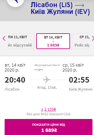 Дати: 9-14 квітня. Вартість квитків у два боки – €112 для учасників wizz-клубу та €130 для всіх інших.