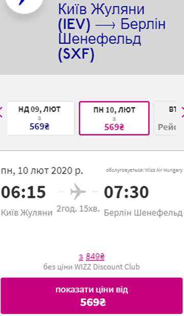 Дата – 10 лютого. Ціна квитка – €20 для учасників wizz-клубу та €31 для всіх інших.