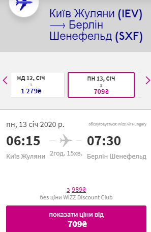 Дата: 13 січня. Вартість квитка в один бік — €27 для учасників wizz-клубу та €37 для всіх інших.