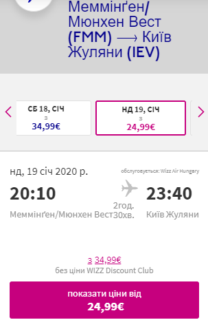 Дата: 19 січня. Вартість квитка в один бік — €25 для учасників wizz-клубу та €35 для всіх інших.