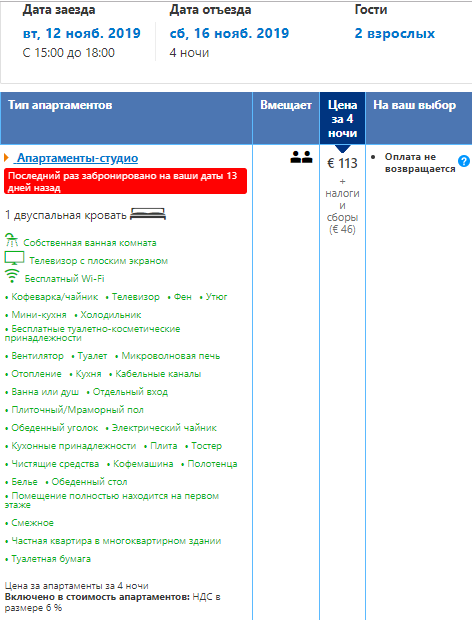 Вартість проживання в апартаментах Marreiros, номер-студіо за 4 ночі – €159 на двох.