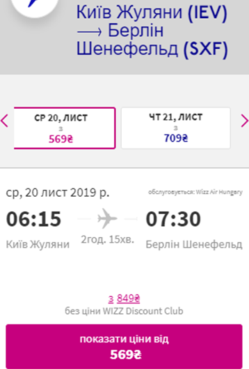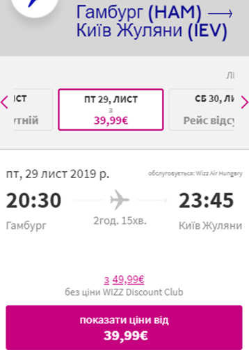 Дата – 20 листопада. Ціна – €21 для учасників wizz-клубу та €31 для всіх інших.