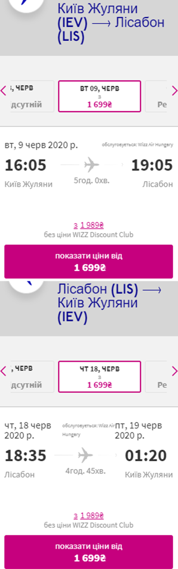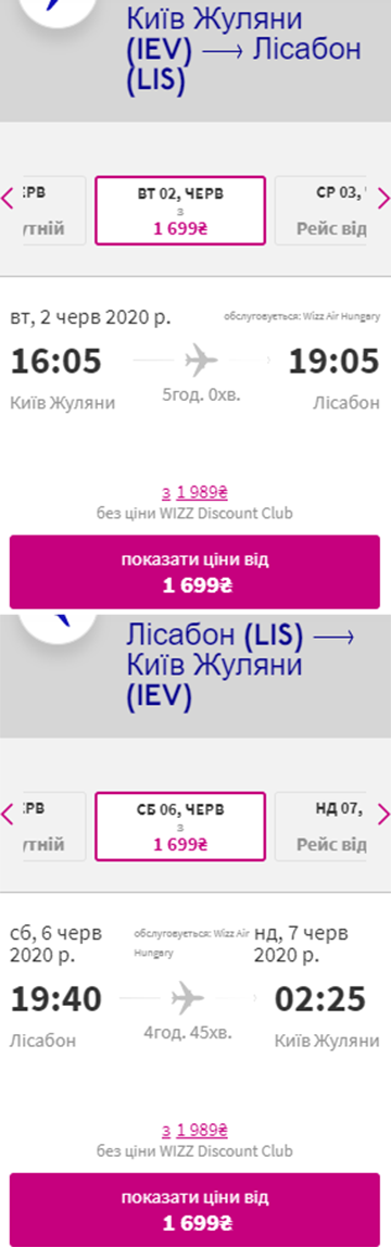 Дати – 2-6 червня. Вартість квитків у два боки – €124 для учасників wizz-клубу та €144 для всіх інших.