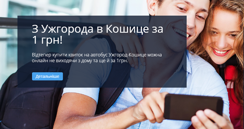 Ужгородське АТП проводить акційний розпродаж квитків на рейси Ужгород – Кошице за ₴1. Акція діє також на зворотні рейси.