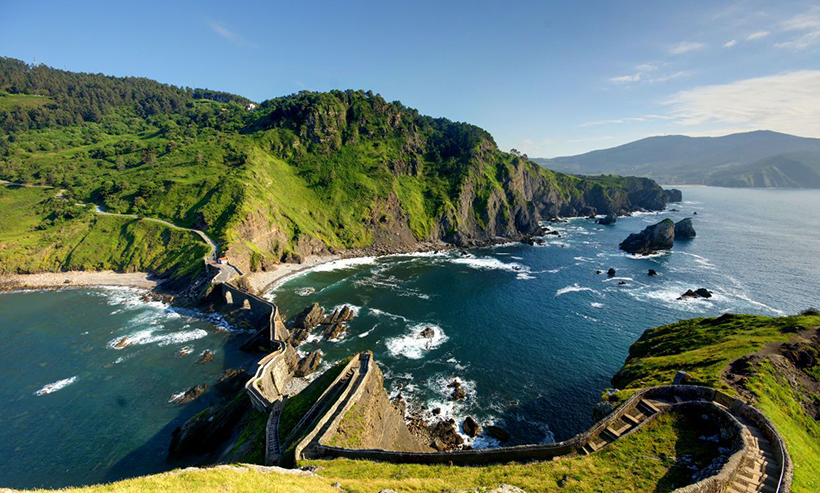 Пізнаєте цей чудовий пішохідний міст по якому гуляють Джон Сноу і Та Деїнеріс Таргарієн? Це острів Сан-Хуан-де-Гестелугаче на узбережжі Біскайського заливу. Острів поєднано з материком рукотворним мостом, котрий переходить в звивисті сходи, що налічують 237 сходинок. Єдиною спорудою на острові є невеличка каплиця на честь Іоана Хрестителя. Археологічні знахідки свідчать, що вона була побудована у 10 столітті.
