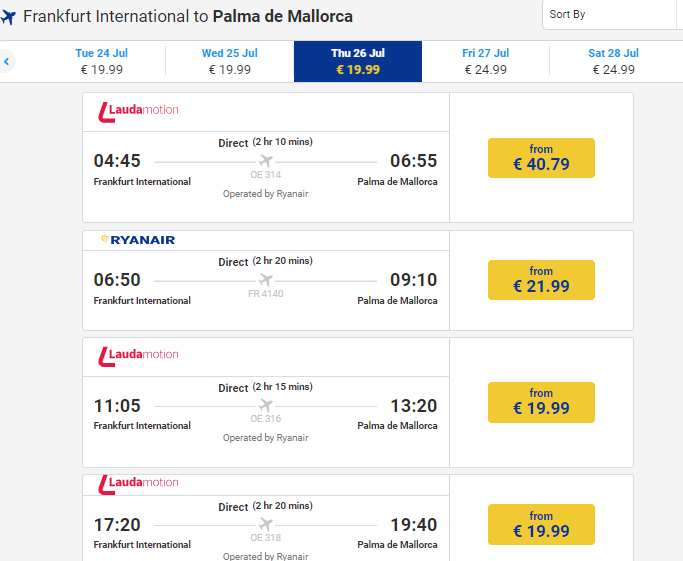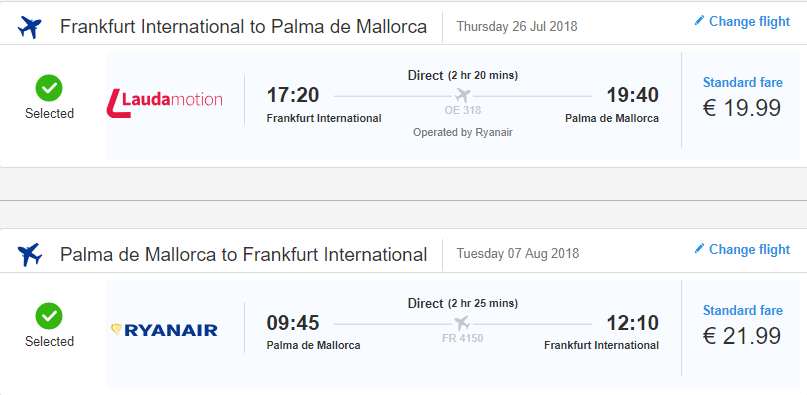 Франкфурт – Пальма-де-Майорка, 26 липня-7 серпня: 42 євро у два боки.