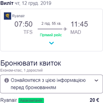 ЗабронюватиТенеріфе – Мадрид
