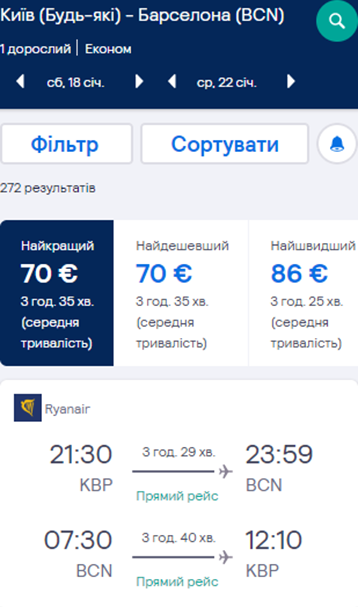 Авіакомпанія Ryanair знизила ціну на деякі перельоти. Мандрія їх відшукала такі ціни та пропонує поглянути.