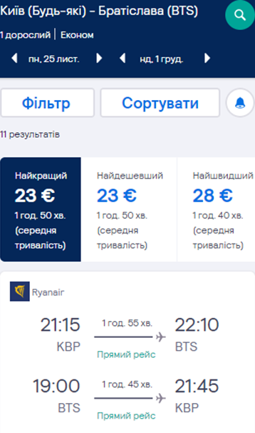 Дати – 25 листопада – 1 грудня. За квитки туди-назад доведеться викласти €23.