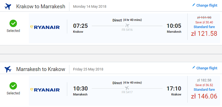 Авіакомпанія Ryanair пропонує прямі перельоти в травні з Кракова в Барселону, Марракеш та на Гран-Канарію. Ціни стартують з €45 у два боки.