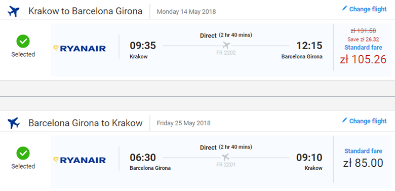 Подорож до Барселони можно запланувати на 14-25 травня. Вартість квитків у два боки становить €45. Вилітаємо з міжнародного аеропорта Краків-Баліце імені Іоанна Павла II, приймає аеропорт Жирона-Коста-Брава.
