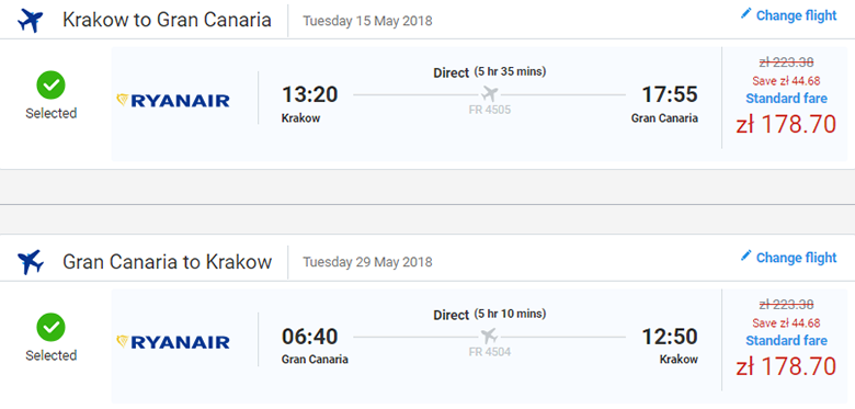 Поїздку плануємо на 15-29 травня. Ціна квитків в обидва боки – €86. Вилітаємо з міжнародного аеропорта Краків-Баліце імені Іоанна Павла II, приймає аеропорт Гран-Канарія.