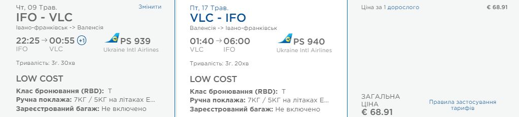 Івано-Франківськ – Валенсія 9-17 травня- 68,9 євро у два боки