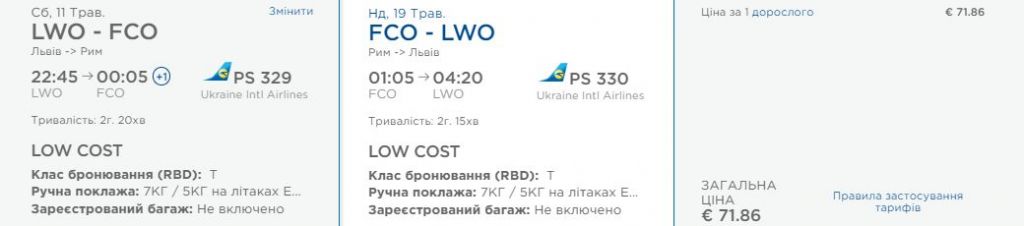 Львів – Рим, 11-19 травня – 71,9 євро у два боки