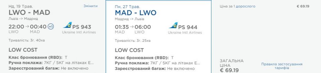 Львів – Мадрид 19-27 травня – 69 євро у два боки