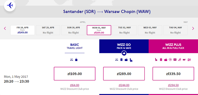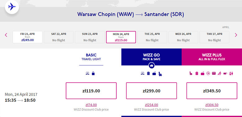 Это предложение для неленивых, кто ради изучения атлантических берегов Испании способен доехать до Варшавы, а затем лететь по «вкусной» цене дальше, в тот далекий и неведомый испанский Сантандер. Даты указанного тарифа, который действует для членов клуба Wizzair Discount Club – 24.04 – 01.05.