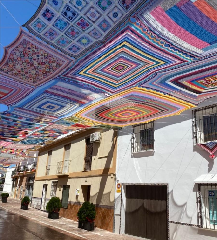 Над пішохідною вулицею вулицею Малаги і раніше влаштовували затінок для порятунку від спеки. Місцева вчителька з в’язання гачком Єва Пачеко та її учні придумали набагато краще рішення – накрити вулицю мазаїчним в’язаним килимом.
