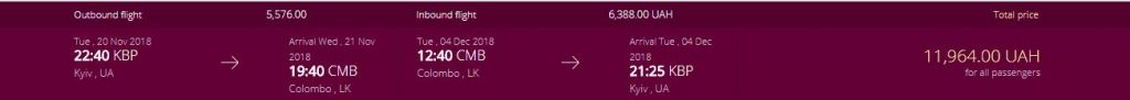Київ – Коломбо, 20 листопада-4 грудня – 385 євро у два боки